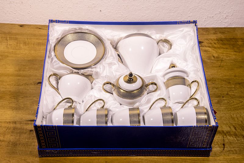 Jogo de chá folhado em ouro